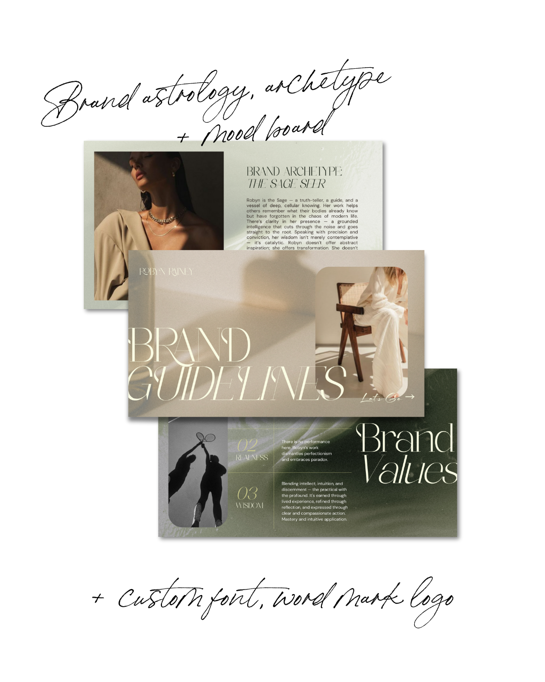 Using her key 3 brand astrology placements for magnetic messaging, visuals and voice, Emily developed Robyn’s Brand Guidelines, complete with fonts, colours, a curated stock imagery collection and more.