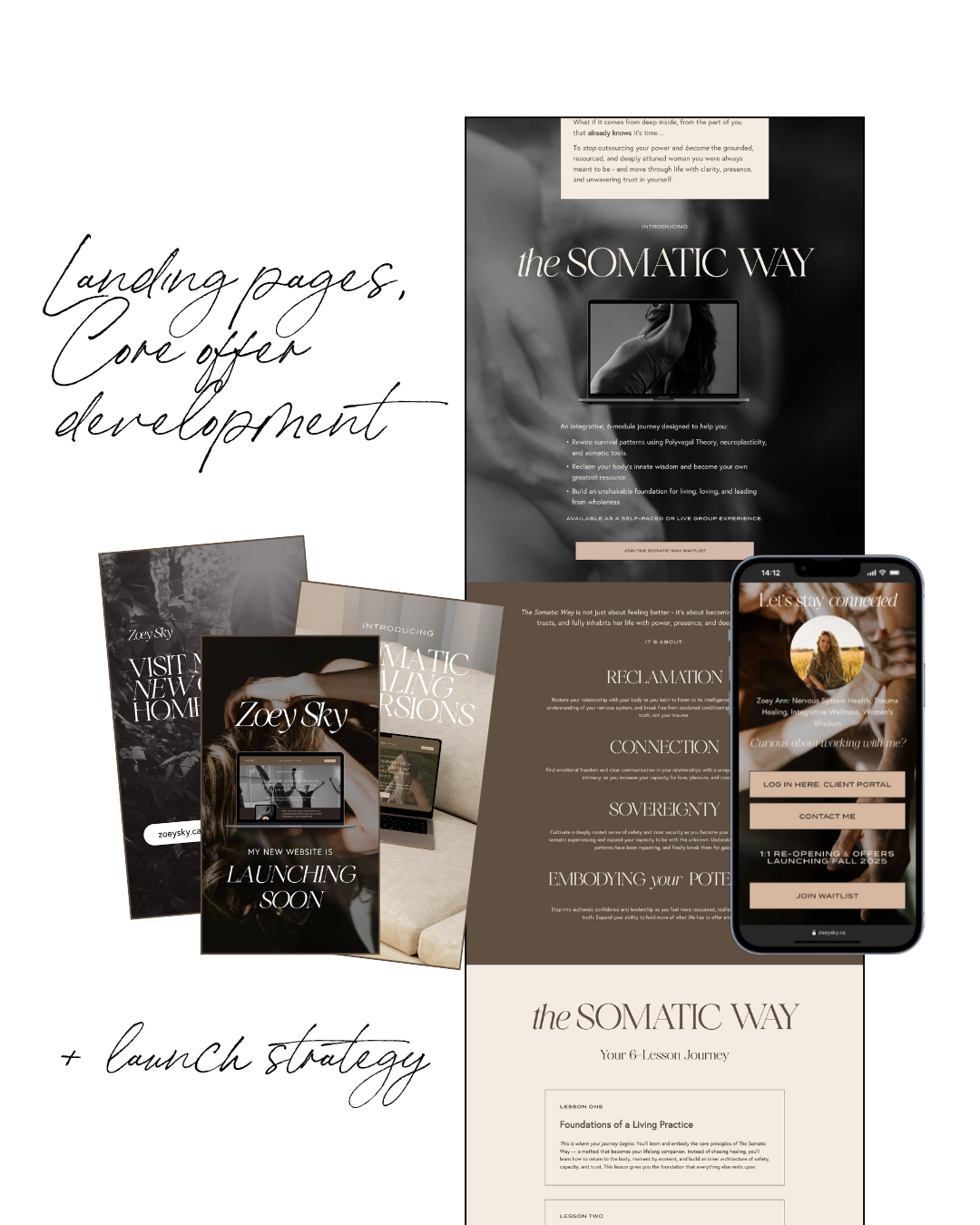 Zoey’s project included add-on long-form sales pages for her core offers, adding opt in forms to begin building her waitlist.